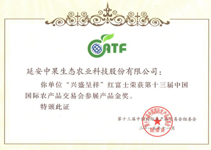 國(guó)際農(nóng)產(chǎn)品交易會(huì)金獎(jiǎng)